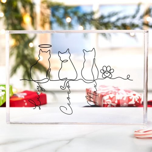 Cat Line Art Gift For Cat Lovers – Personalized Acrylic Plaque