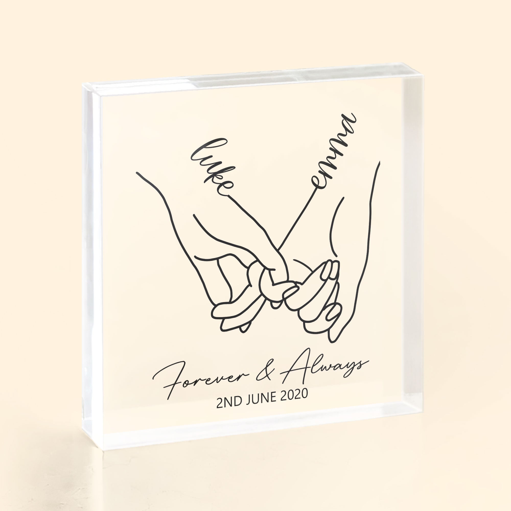 Celebrate your eternal bond with a custom acrylic plaque displaying your names and wedding date. This unique personalized wall art makes a thoughtful gift for newlyweds. This custom art plaque commemorates the start of your lives together as a married couple. It’s the perfect first anniversary or wedding gift for newlyweds. There’s no better way to commemorate your big day than with custom wall art displaying your new shared names. This acrylic plaque will serve as a lasting symbol of the love and commitment you promised each other. A personalized gift to cherish for years to come. For newly married couples starting their lives together, this custom name and date plaque has timeless appeal. Surprise your new spouse with unique art celebrating your wedding that you’ll treasure forever.