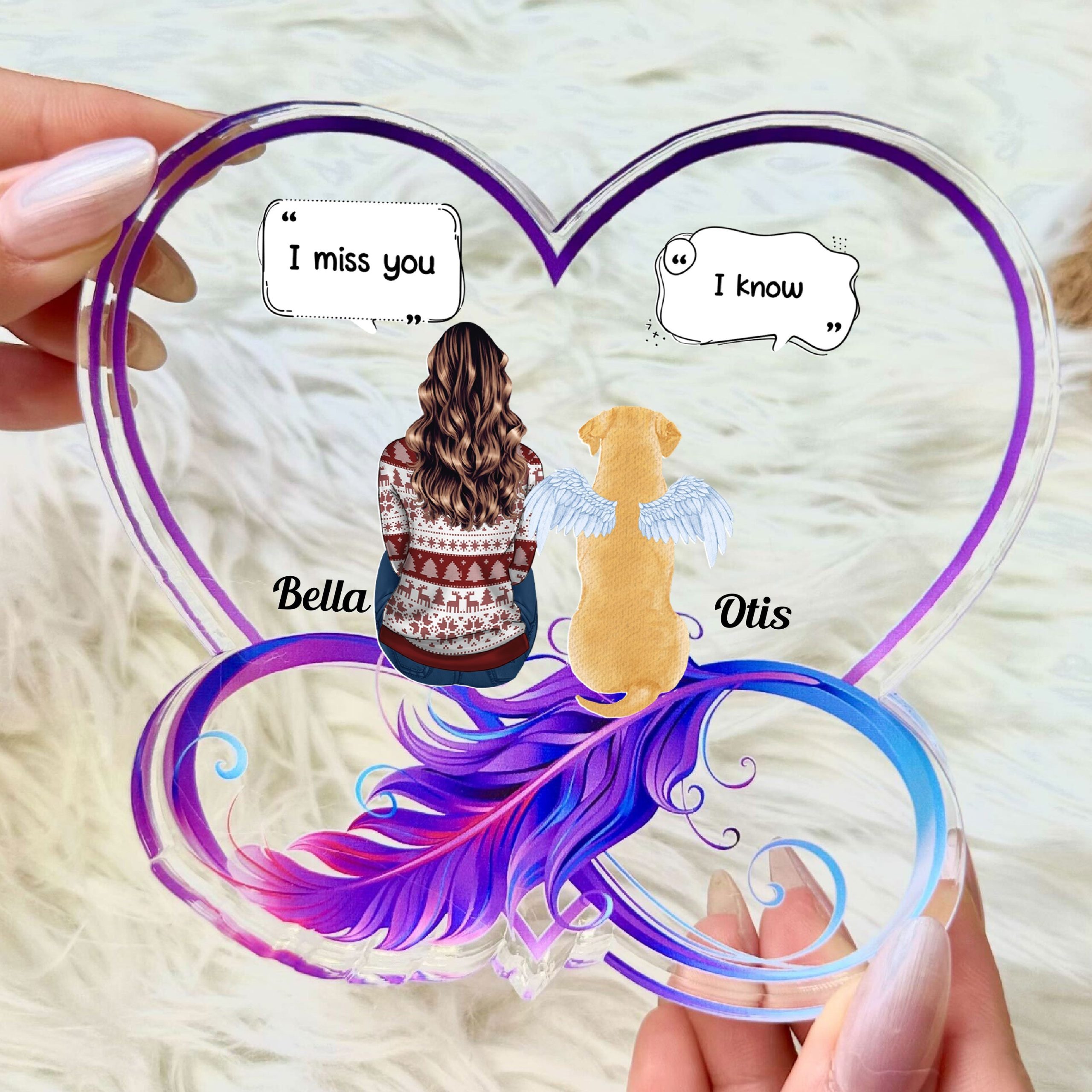 “I Still Miss You Pet Memorial – Personalized Custom Shaped Acrylic Plaque” is a heartfelt tribute and a unique remembrance for beloved pets. Crafted with care, this durable acrylic plaque is a thoughtful way to express sympathy and honor the special bond shared with a lost dog or cat. Customize it with your pet’s name to create a one-of-a-kind memorial keepsake. Carry their memory with you wherever you go with this special Pet Memorial, a touching tribute to the cherished moments you shared.