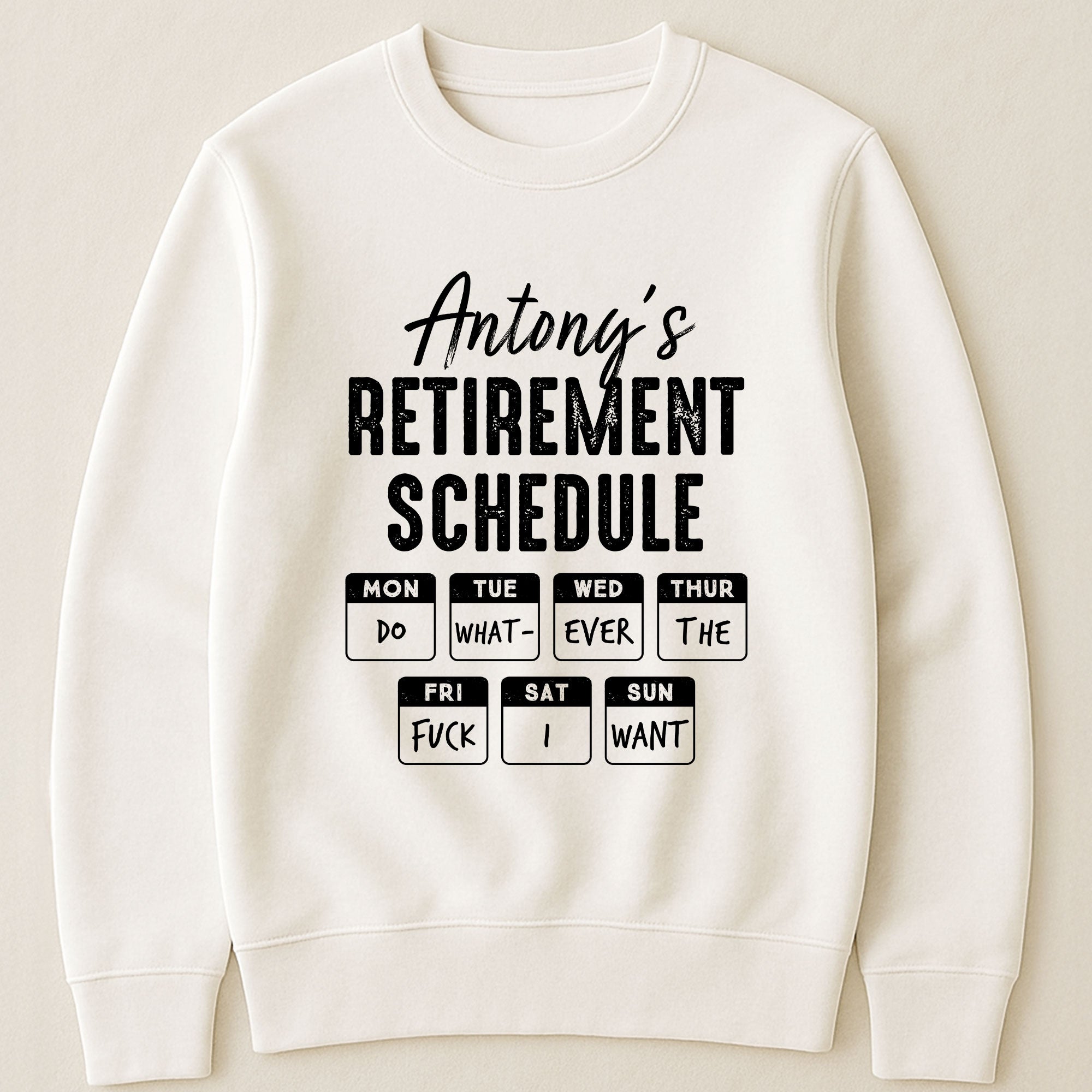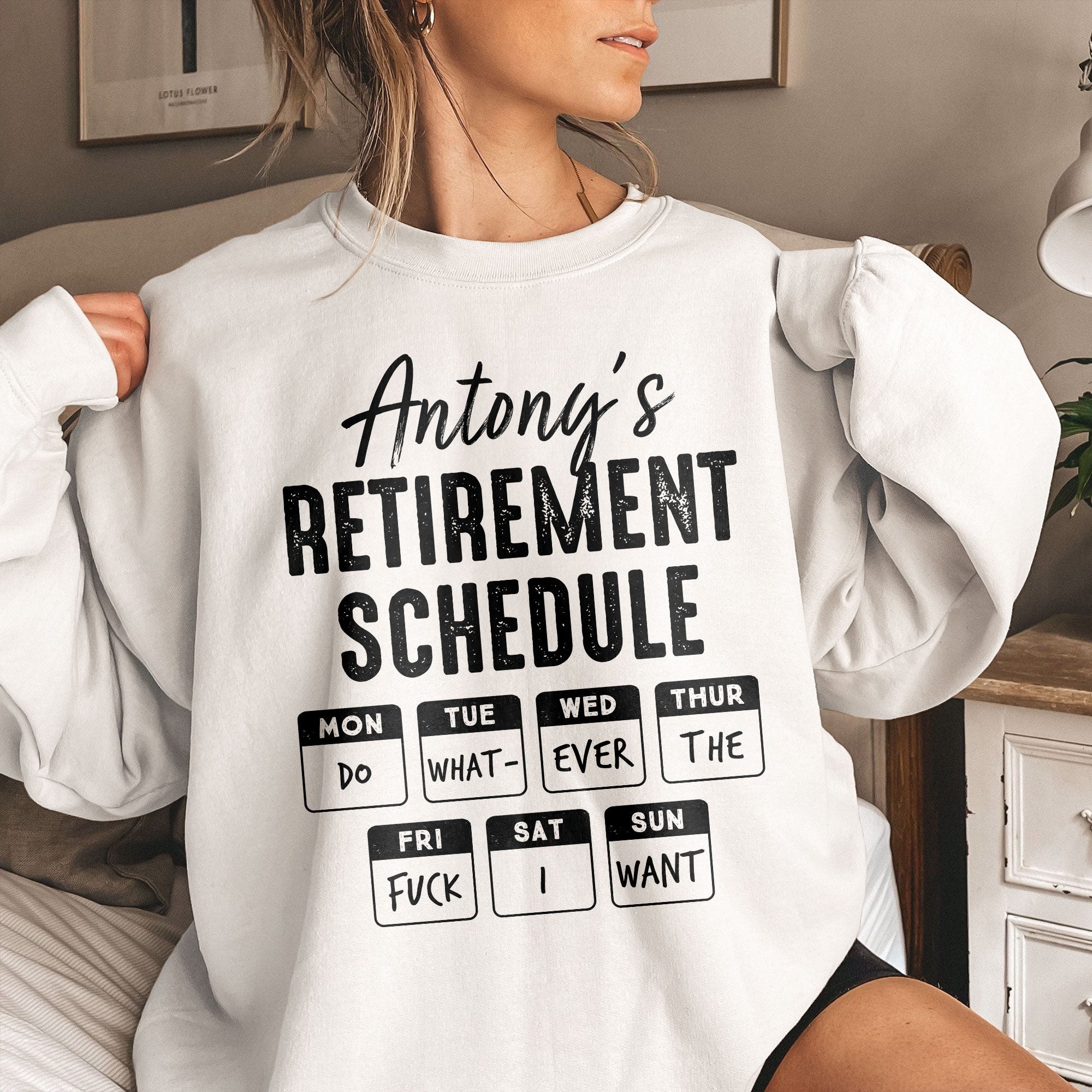 Celebrating an upcoming retirement? Our Retirement Schedule shirt, sporting a cheeky, yet empowering gist of ‘doing whatever you please’ is the perfect attire to honour this milestone. Whether it’s for yourself or a loved one, this shirt embodies the rewarding freedom and independence that comes with retirement. It is a charming, fun way to embrace this exciting new chapter that’s all about personal time and activities of interest.